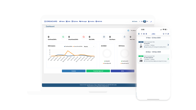CrewCard connects job data, timesheets, and approved work directly to the invoicing engine. This ensures only verified work is billed, eliminating human error and manual reconciliation. Invoices are generated using your predefined charge rates, job references, and client-specific billing rules, allowing billing teams to produce accurate, professional invoices at scale without relying on spreadsheets or disconnected tools.